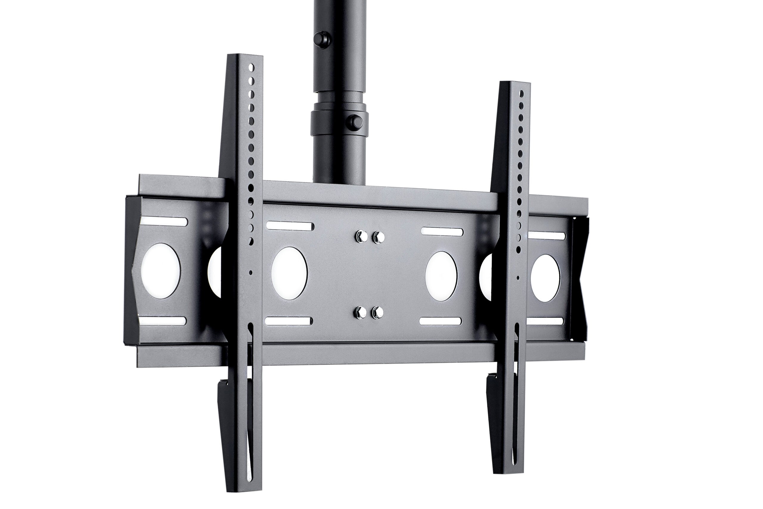 Die CMS21 Deckenhalterung ist eine robuste und elegante Lösung für große Bildschirme von 40″ bis 75″. Dank der hohen Tragfähigkeit von bis zu 60 kg und der stufenweisen Höhenverstellung eignet sie sich perfekt für den Einsatz in Hotels, Fitnessstudios, Restaurants oder öffentlichen Gebäuden.