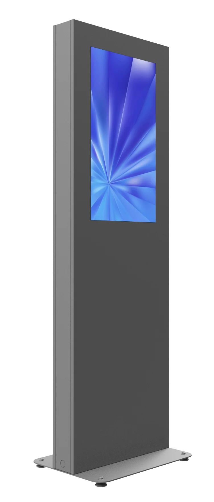 Die robuste Stahlkonstruktion in Kombination mit einem minimalistischen Design macht es zur idealen Lösung für die Präsentation digitaler Inhalte in Einkaufszentren, Behörden, Konferenzzentren oder an Flughäfen.
