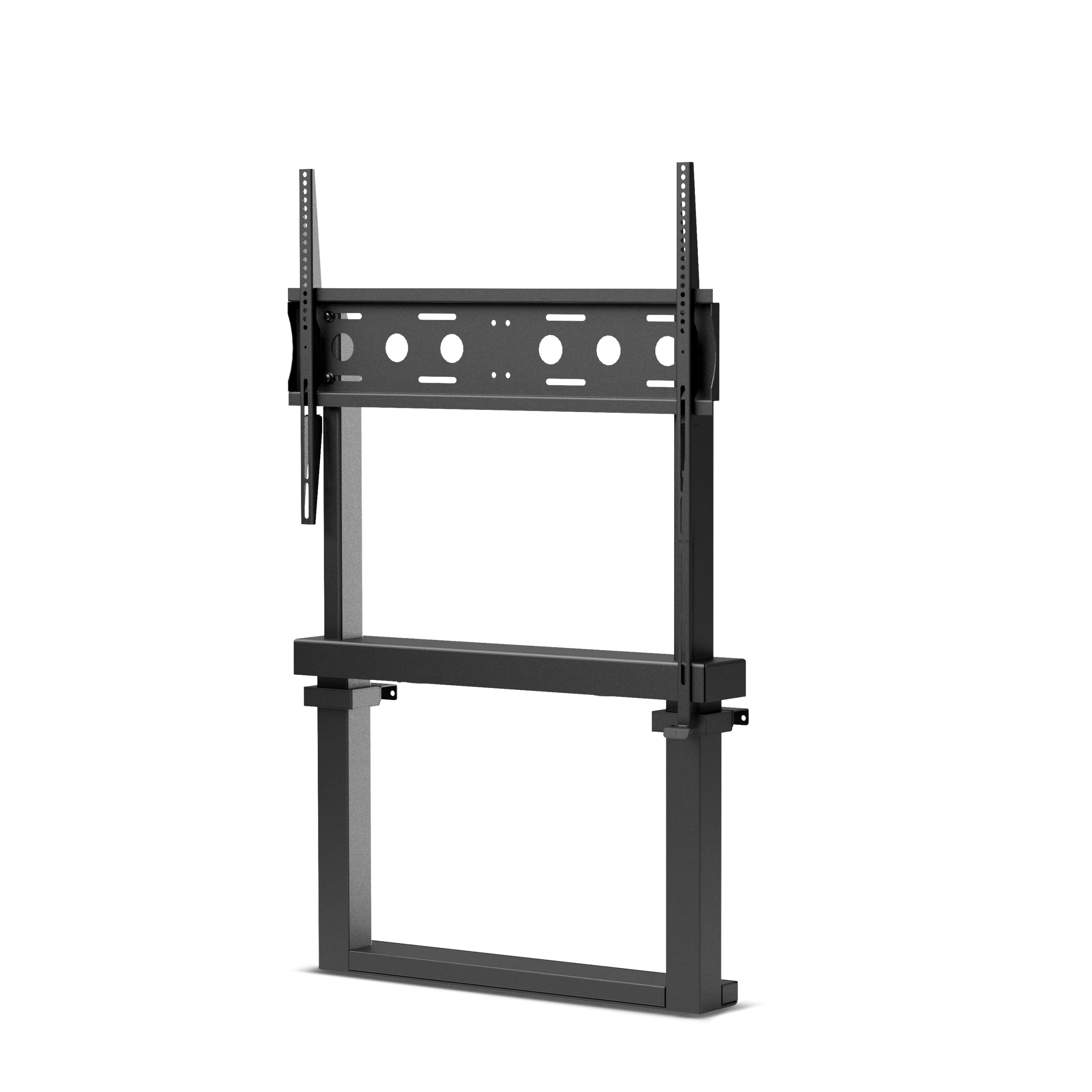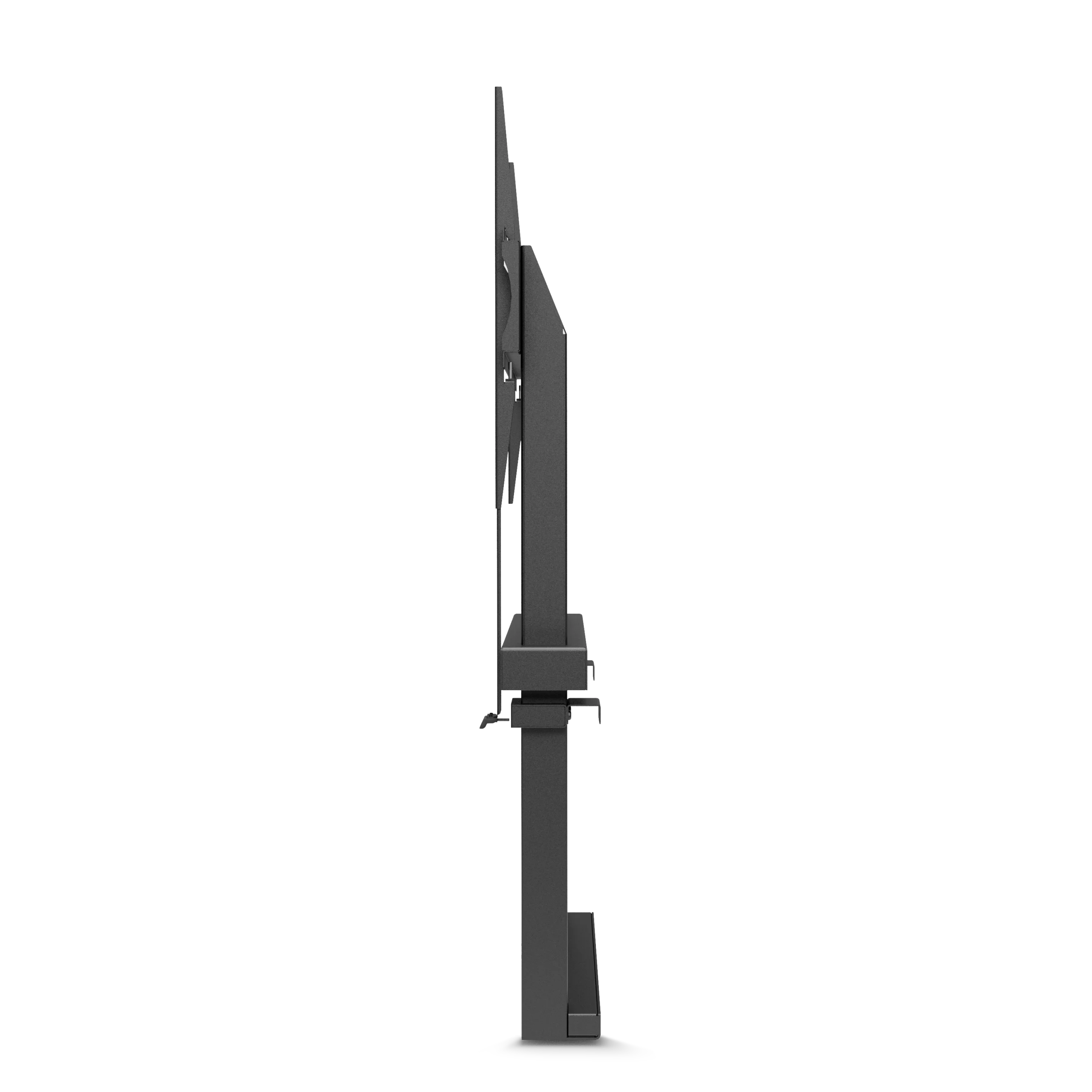 Mit einem vertikalen Verstellbereich von 650 mm lässt sich die Bildschirmposition flexibel an unterschiedliche Präsentationsszenarien sowie an verschiedene Nutzer- und Betrachterhöhen anpassen.