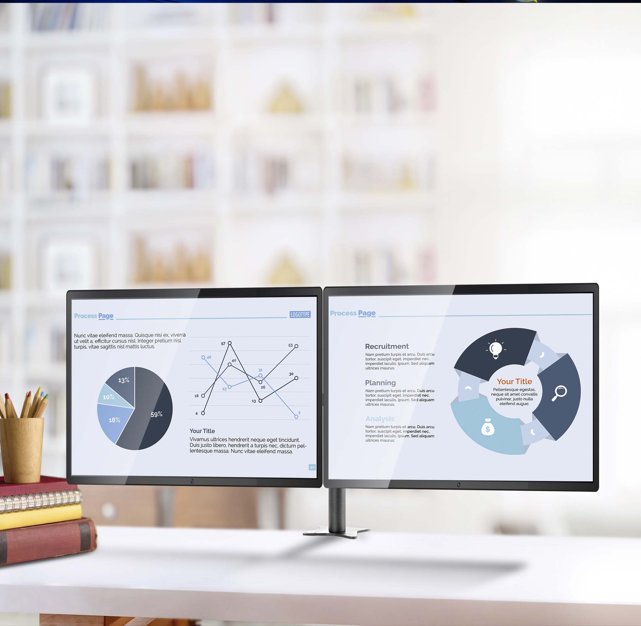 Die SV05 Monitor-Tischhalterung ist die ideale Lösung für Anwender, die mit zwei Monitoren arbeiten und dabei Wert auf Ergonomie und Flexibilität legen. Mit der Möglichkeit zur vollen Höhenverstellung sowie einer 360° Drehfunktion sorgt der SV05 für maximale Anpassung an individuelle Arbeitsplätze – ob im Büro, im Home-Office oder in Überwachungs- und Kontrollzentren.